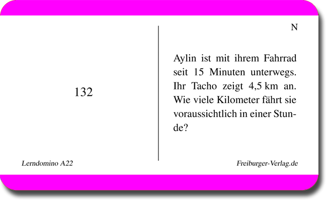 Der Klassensatz enthält 12 verschieden farbige Dominosätze des Lerndominos A22 "Dreisatz (Proportionale / Antiproportionale Zuordnungen)", also insgesamt 240 Karten, für 12 Kleingruppen mit jeweils zwei bis drei Schülerinnen und Schüler.