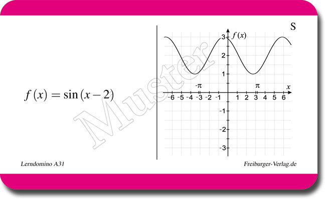 Der Klassensatz enthält 12 verschieden farbige Dominosätze des Lerndominos A31 "Trigonometrische Funktionen", also insgesamt 240 Karten, für 12 Kleingruppen mit jeweils zwei bis drei Schülerinnen und Schüler.